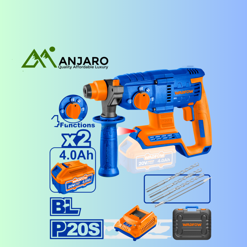 The WLM15225 20V Brushless Cordless Rotary Hammer is engineered for superior power, durability, and precision in demanding construction environments. Featuring a powerful brushless motor, it delivers 2.0J of impact energy and up to 5400bpm—ideal for drilling into concrete, steel, or wood with ease. Its SDS Plus chuck system ensures quick bit changes and secure holding, while the integrated LED work light enhances visibility in dark workspaces. Complete with two 4.0Ah lithium batteries and a fast charger, this rotary hammer provides consistent performance, longer runtime, and the freedom to work anywhere without compromise.