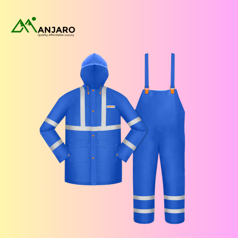 Design: Two-piece reflective rain suit (jacket + trousers)