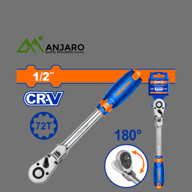 The WRW4212 1/2" Drive Flex Head Ratchet is engineered for professionals who demand precision, flexibility, and power. Featuring a 72-tooth gear mechanism, it delivers smooth, fine ratcheting action with minimal swing arc — perfect for working efficiently in tight or confined spaces.