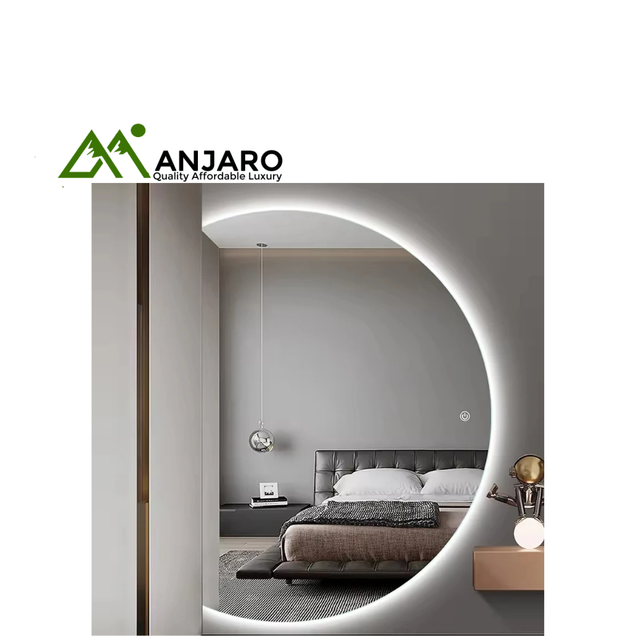 Add modern elegance to your bathroom with this Round LED Half-Circle Bathroom Mirror. Featuring built-in LED backlighting, a sleek semi-circular silhouette, and quality mirror glass, this piece transforms your wall into a luxurious focal point. Designed for both style and function, it combines ambient lighting, moisture resistance, and easy wall mounting. Perfect for vanity, washroom, or living space décor where both light and design matter.
