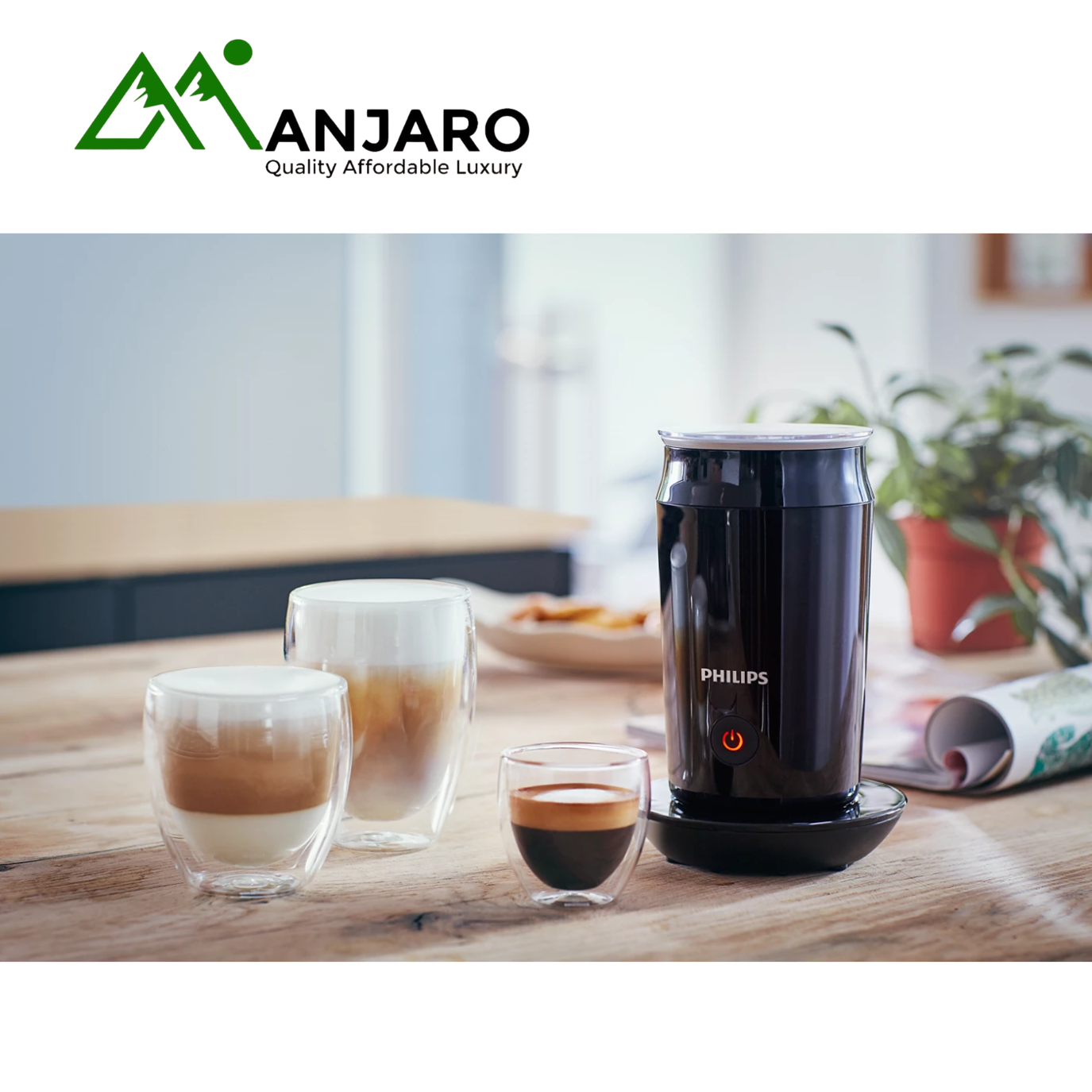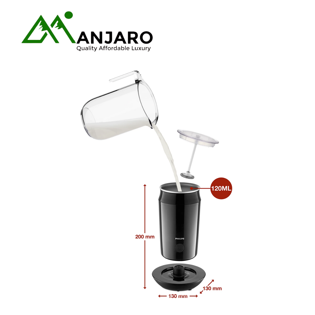 Enjoy barista-style beverages at home with the Philips Milk Twister CA6500/63, your perfect companion for creating smooth, creamy froth every time. Whether you love a rich cappuccino, indulgent latte, or refreshing iced coffee, this automatic milk frother delivers perfect hot or cold foam in seconds. Its intuitive one-touch operation makes it simple to use, while the non-stick interior ensures effortless cleaning. Designed with a sleek, compact build and magnetic whisk technology, it guarantees consistent foam quality and quiet performance. Experience café-quality drinks in the comfort of your home — elevate your mornings and treat yourself to pure, creamy perfection with Philips innovation.