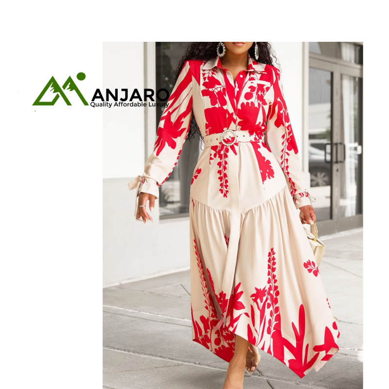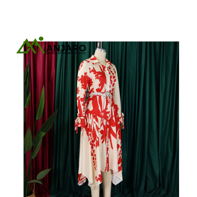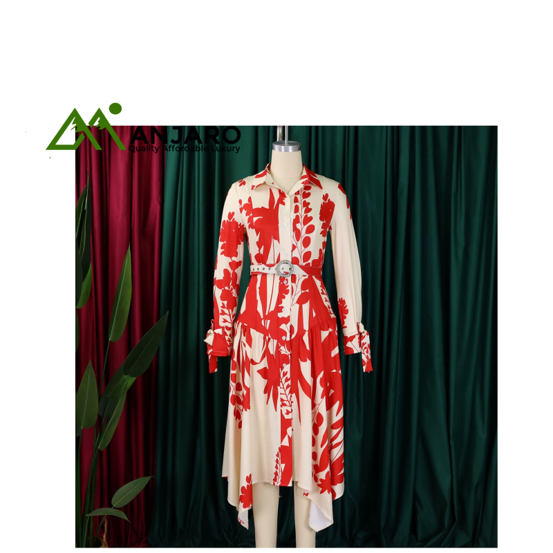 Step into effortless elegance with this Summer Long Sleeve Lapel Dress. Designed with a floral print and irregular hem, it combines a flattering A-line silhouette with breathable poly-cotton knitted fabric for superior comfort. The tight waist design adds shape, while pockets provide everyday convenience. Perfect for warm-weather outings, this dress blends casual sophistication with easy-care practicality — simply wash, dry clean, and wear again.