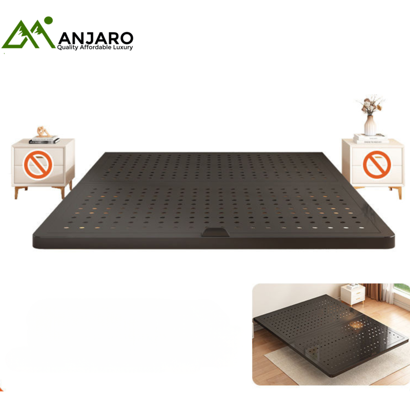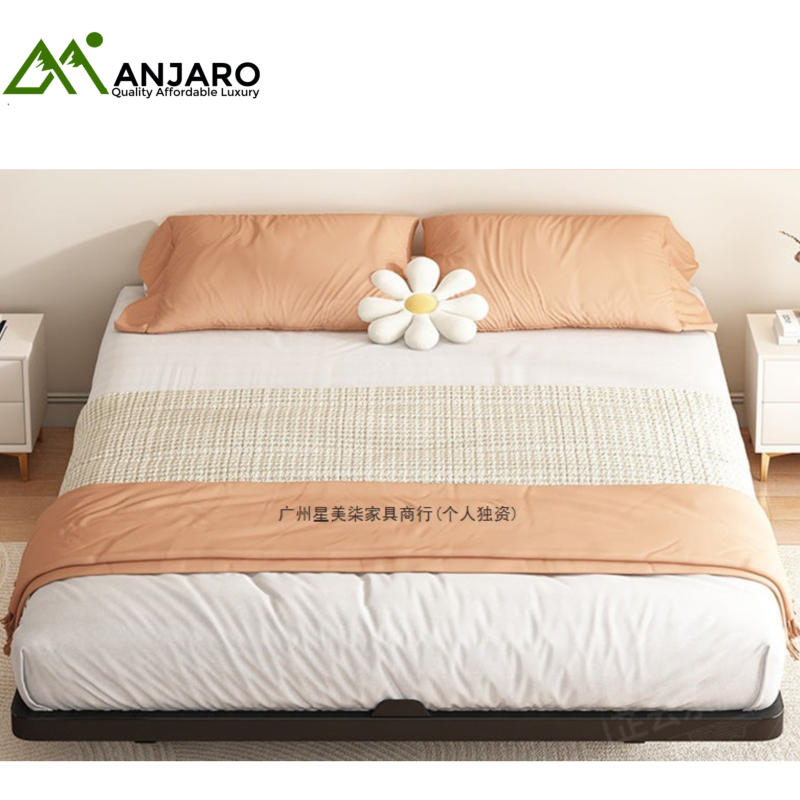 Bring modern elegance and functionality to your bedroom with this cool black carbon steel suspended bed, featuring a sleek floating design and integrated light strip for subtle ambient illumination. The durable steel frame ensures long-lasting support, while the suspended structure delivers a minimalist, European-style aesthetic ideal for master bedrooms or children’s rooms.