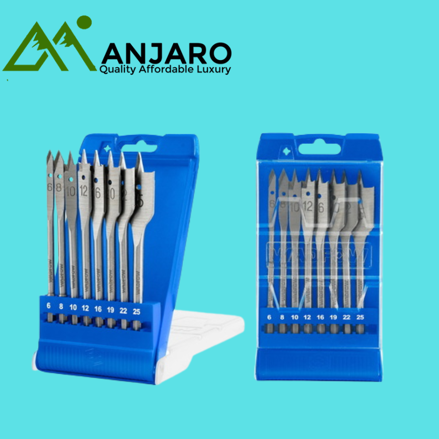 The WWF6B08 8‑piece flat wood drill bit set delivers high-performance boring capabilities for clean, accurate holes in solid wood, plywood, MDF, and softwood. Each bit is designed with a sharp flat cutting edge that ensures fast material removal and smooth, splinter-free results.
