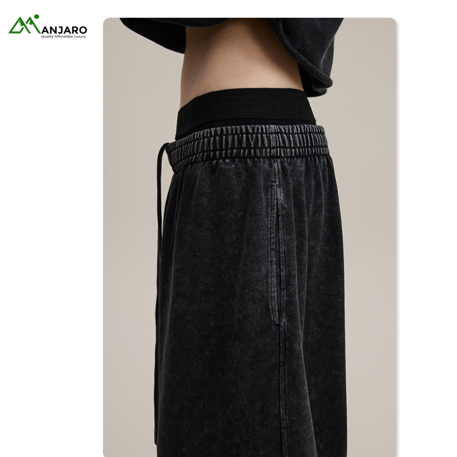Waist: Elastic double waistband