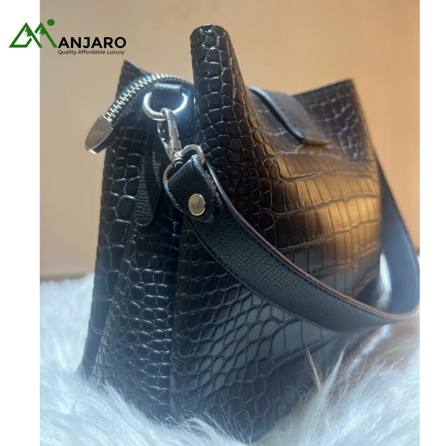 Elevate your style with the Black Croc-Embossed Bucket Bag (Givenchy-Style), a sophisticated accessory designed for fashion-forward individuals. The luxurious croc-embossed texture adds a bold, elegant touch, while the structured bucket silhouette provides both style and practicality. Carry it comfortably by the top handle or use the detachable shoulder strap for a hands-free crossbody look. Compact yet functional, it holds essentials like your phone, wallet, keys, and small cosmetics, making it perfect for both day and evening outings. Lightweight and durable, this bag blends designer-inspired style with modern versatility, creating a statement piece that enhances any outfit.