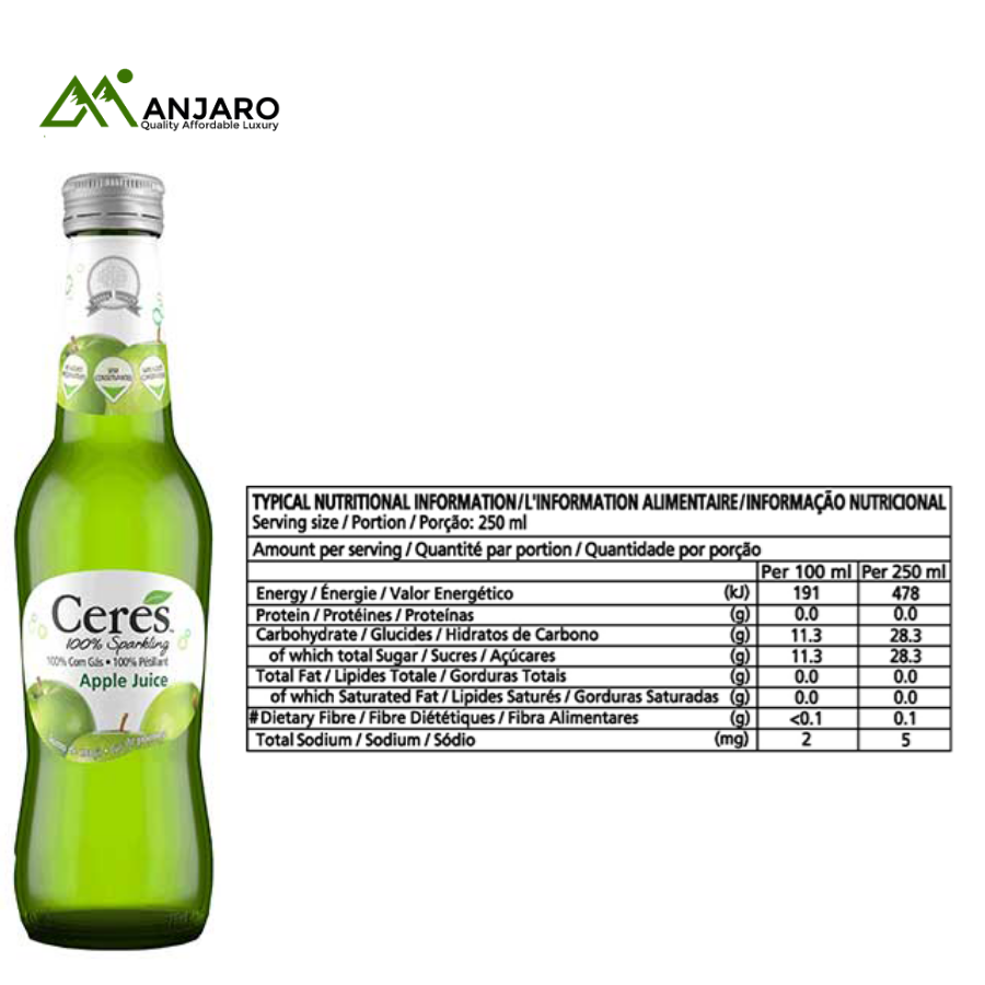 Enjoy the crisp, refreshing taste of Ceres Apple Juice Sparkling, crafted from 100% natural apples. This sparkling beverage delivers a lively fizz and authentic apple flavor, perfect for quenching your thirst anytime. Ideal for parties, family meals, or on-the-go enjoyment, each 330ml bottle offers a burst of fruity freshness.