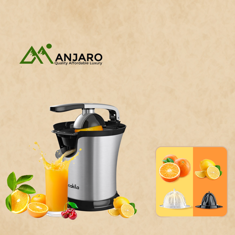 The Decakila KEJC008B Citrus Juicer is designed to efficiently extract juice from various citrus fruits, including oranges, lemons, and grapefruits. Equipped with a powerful 160W motor and double cones, it accommodates different fruit sizes for optimal juice extraction. The stainless steel body ensures durability, while the soft rubber grip provides comfortable handling. Its anti-drip system and removable BPA-free filter basket make juicing clean and convenient.