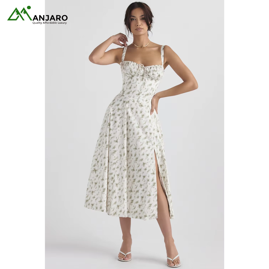 Embrace effortless summer elegance with the D&M Sleeveless Floral Print Midi Dress. Featuring a playful side split, tie-up bow straps, and an asymmetrical neckline, this dress combines a light chiffon fabric with a loose, breathable silhouette for ultimate comfort. Perfect for casual outings, brunches, beach strolls, or warm-weather gatherings, it is eco-friendly, dry-cleanable, and machine-washable, making it as practical as it is stylish.