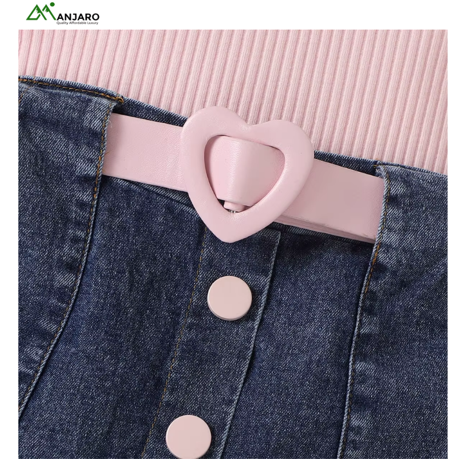 The soft-shell fabric top provides a smooth, cozy feel, while the pleated denim skirt adds fun movement and a stylish flair. Designed for birthdays, school events, photoshoots, and casual outings, this set is anti-wrinkle, easy to care for, and maintains its shape wash after wash. A charming choice for fashionable young girls who love versatile and expressive outfits.