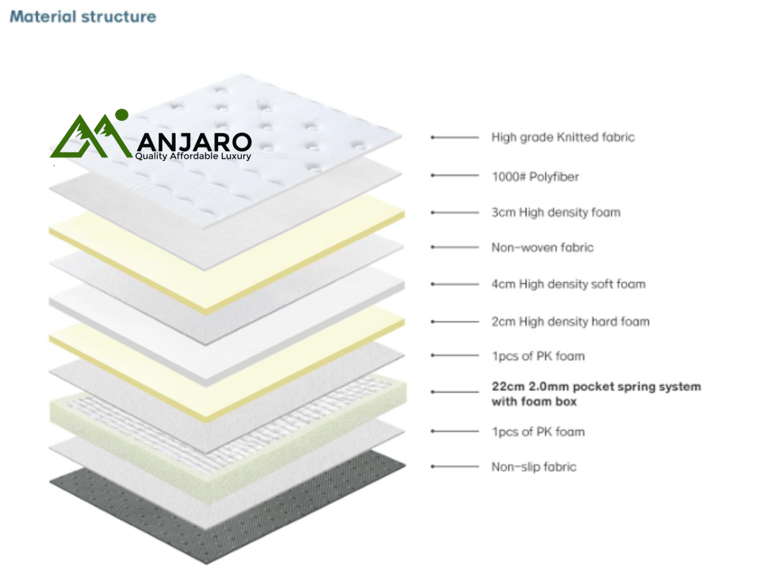 Built with layers of high-density soft and hard foam—including 4cm of soft foam, 3cm of hard foam, and an additional 3cm comfort foam layer—the HT001C provides plush comfort with a stable, supportive core. At the center lies a 22cm 2.0mm pocket spring system encased in a foam box, offering advanced motion isolation, contouring support, and reinforced perimeter stability. Ideal for sleepers who crave a luxurious surface without compromising spine alignment or mattress longevity.