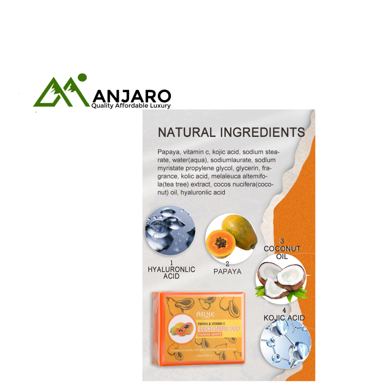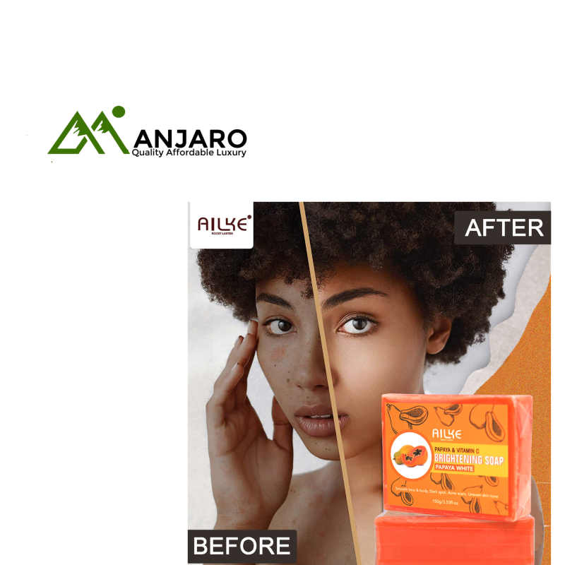 Reveal naturally brighter, smoother skin with the AILKE Kojic Acid & Papaya Soap, enriched with organic coconut oil and papaya extract. Specially formulated to target dark spots, hyperpigmentation, and acne, this handmade skincare bar delivers a powerful whitening and clarifying effect while deeply cleansing your skin.