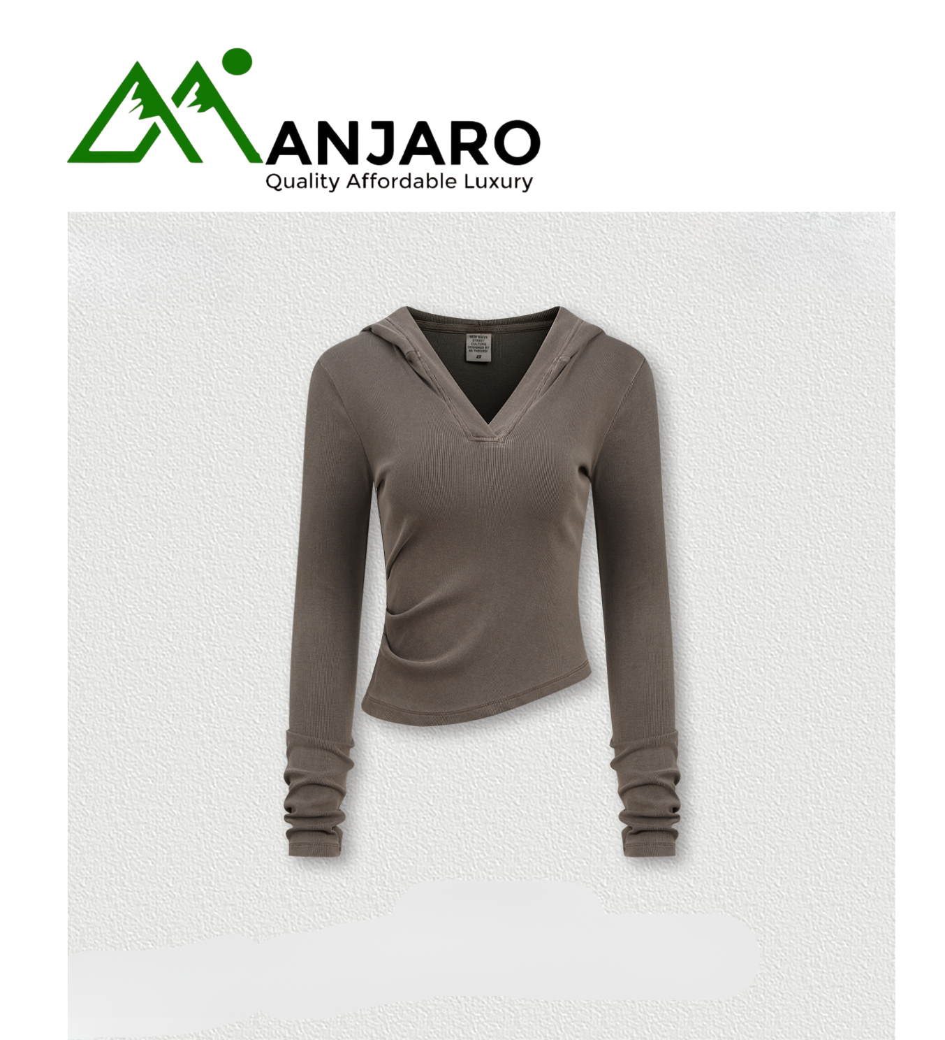 The V-neck cut adds a feminine edge, complemented by a casual hood and dropped shoulder sleeves for a modern, relaxed vibe. Subtle distressing and irregular elements give it that vintage-inspired “Hot Girl” street appeal — perfect for pairing with cargo pants, denim, or skirts. Ideal for women who love combining casual comfort with trend-forward flair.