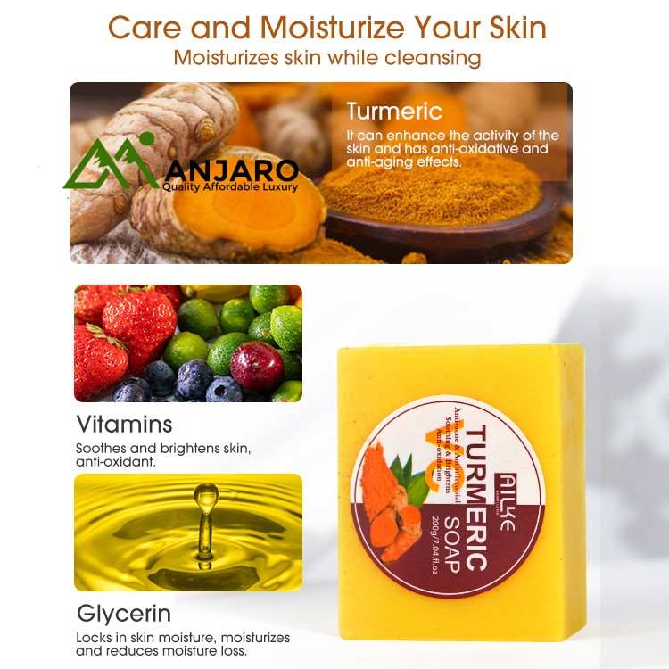 Achieve radiant, clear skin with the Natural Handmade Turmeric Soap Bar, enriched with Vitamin C and turmeric extract. Specially formulated for all skin types, this soap gently removes dirt, excess oil, and impurities while fighting acne and blemishes. Known for its natural anti-oxidation and brightening properties, turmeric helps restore an even skin tone, while Vitamin C supports healthy, glowing skin.