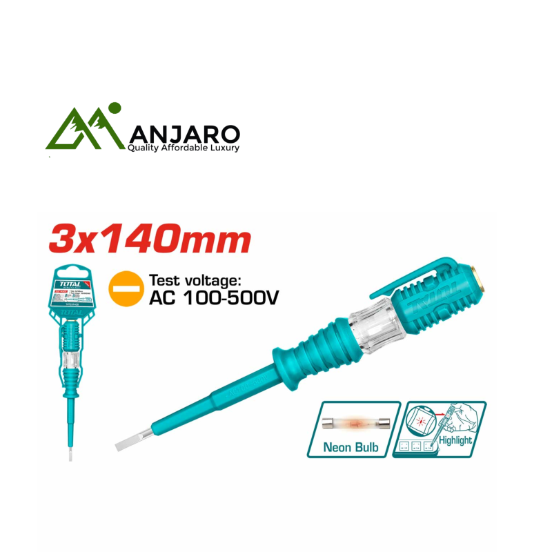 The Total THT291408 Test Pencil is a must-have tool for quick and safe identification of live electrical circuits. Designed with a durable build and insulated body, this test pencil allows users to easily detect AC voltage in outlets, wires, and terminals. Perfect for electricians, technicians, and household users, it offers a simple and reliable way to check for power presence before working on any electrical system.