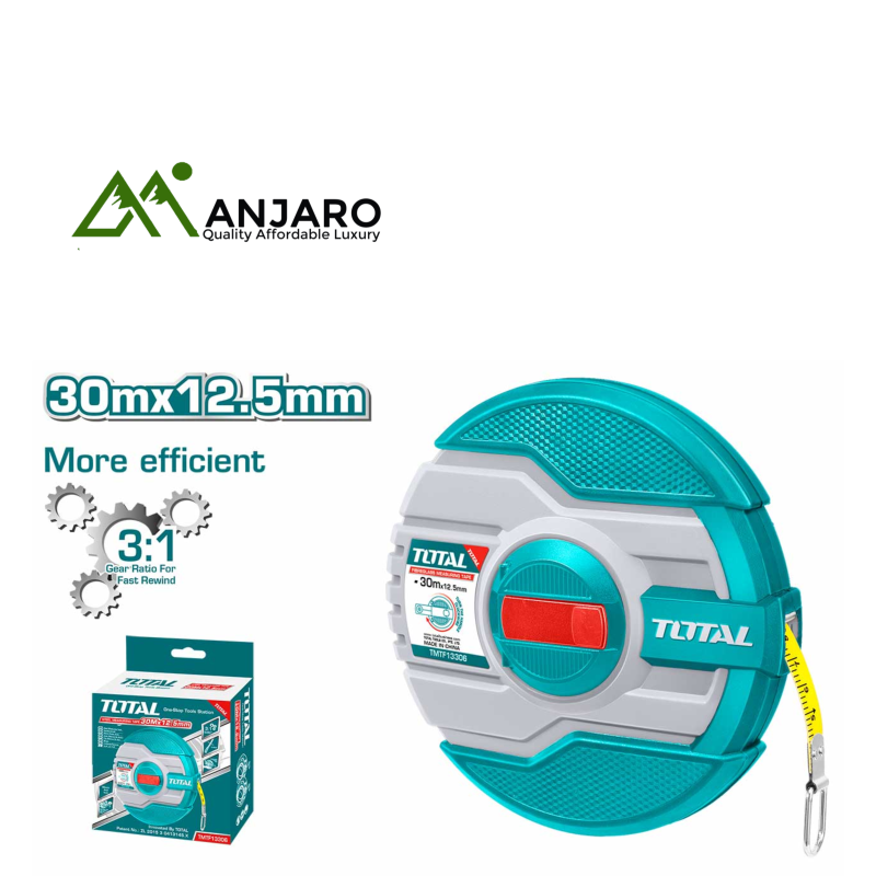 Take control of your measurement tasks with the Total Fibreglass Measuring Tape series, featuring TMTF13206 (20m) and TMTF13306 (30m). Designed for both professionals and DIY users, these tapes are made with robust fibreglass that resists stretching, tearing, and corrosion. Whether you’re laying out short or medium distances on construction sites, in gardens, or for road work, these tools provide dependable accuracy in tough conditions. Housed in durable ABS plastic cases and fitted with ergonomic crank handles, these measuring tapes offer long-term performance and user-friendly operation.