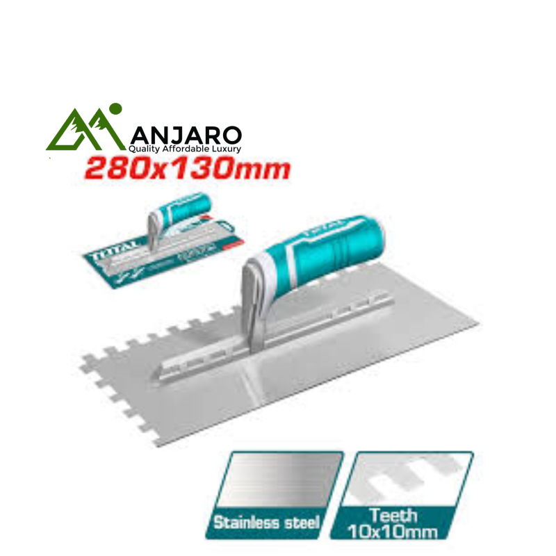 The Total THTT81286 Plastering Trowel with Teeth is engineered for precision and consistency in every stroke. Designed for professional tilers and DIY renovators, this notched trowel features a 280mm stainless steel blade with uniform teeth that allow for even adhesive distribution during tile installation. The durable plastic handle offers a comfortable, slip-resistant grip, reducing hand fatigue during extended use. Whether you're working on ceramic, porcelain, or stone tiles, this tool delivers the exact thickness and spread needed for strong, lasting adhesion. Its lightweight yet sturdy construction makes it an essential tool for plastering, flooring, and tile projects.