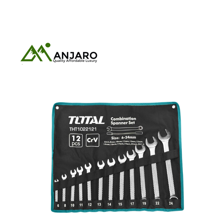 The Total THT1022122 12-Piece Combination Spanner Set is engineered for mechanics, technicians, and DIYers who demand strength, precision, and versatility. Each spanner in the set features a dual-function design—an open-end head for quick turning and a ring-end head for high-torque fastening. Constructed from durable chrome vanadium steel (Cr-V) and heat-treated for added toughness, these wrenches are corrosion-resistant and built to endure daily use. With sizes ranging from 6mm to 22mm, the set covers a wide spectrum of tasks from automotive repairs to equipment maintenance. The slim profile and balanced grip make them easy to handle in tight spaces, ensuring maximum efficiency on every job.