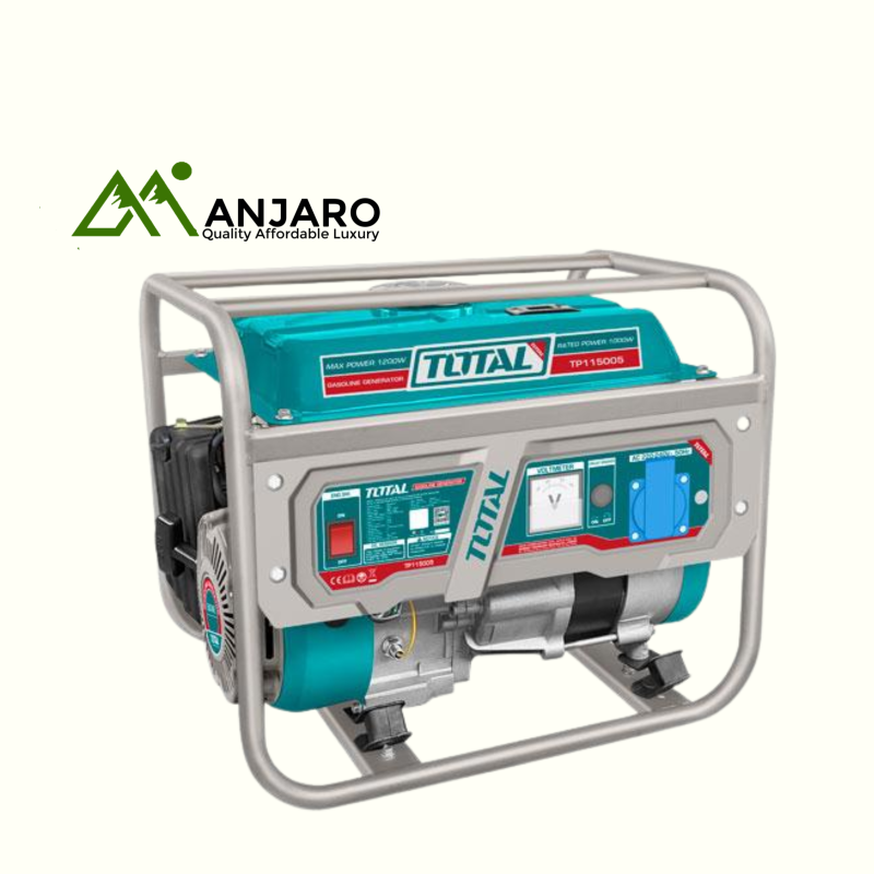 Stay powered through outages and off-grid adventures with the Total TP115005 Gasoline Generator – a robust and reliable backup power solution designed to keep your essentials running. With a 5.5kW output and a durable 15-litre fuel tank, this generator is ideal for homes, workshops, events, and job sites. Built with low-oil shutdown protection, a high-efficiency cooling system, and easy-start technology, it ensures safety and convenience even in demanding conditions.