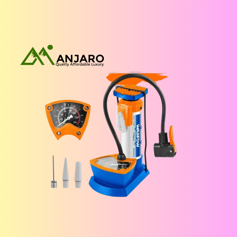 Featuring a built-in tank for steady airflow and a clear pressure gauge displaying both Bar and PSI units, you’ll achieve accurate inflation every time. The rubber pedal ensures stability and grip, while the compact design allows easy storage and portability. Packaged neatly in a color box, the WPP2510 delivers performance and durability you can trust—perfect for every garage, workshop, or outdoor adventure.