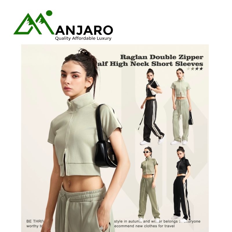 Step out in sporty sophistication with the BE Women’s High-Neck Double Zipper Cardigan Set, designed for the modern woman who blends comfort with confidence. This chic short-sleeve set features a mock neck design and color block panels that accentuate your streetwear style. The double zipper closure allows versatile wear—zip it up for a sleek, structured look or open it halfway for relaxed casual flair.