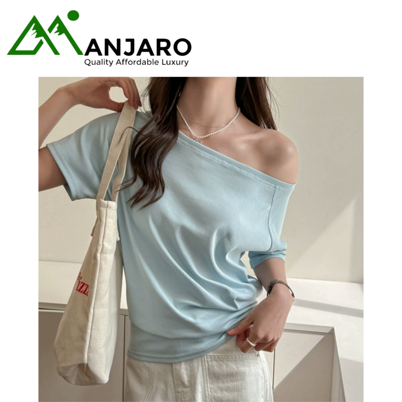 Step into effortless elegance with this One-Shoulder Loose Large Version Short-Sleeved T-Shirt for Women — a chic fusion of comfort and sophistication. Made from premium modal fabric, it drapes beautifully on the body while allowing breathable comfort all day long. The off-shoulder neckline adds a subtle, fashionable edge, making it perfect for casual outings, relaxed weekends, or elevated everyday wear. Whether paired with jeans, shorts, or a skirt, this niche design T-shirt delivers a statement of style and confidence.