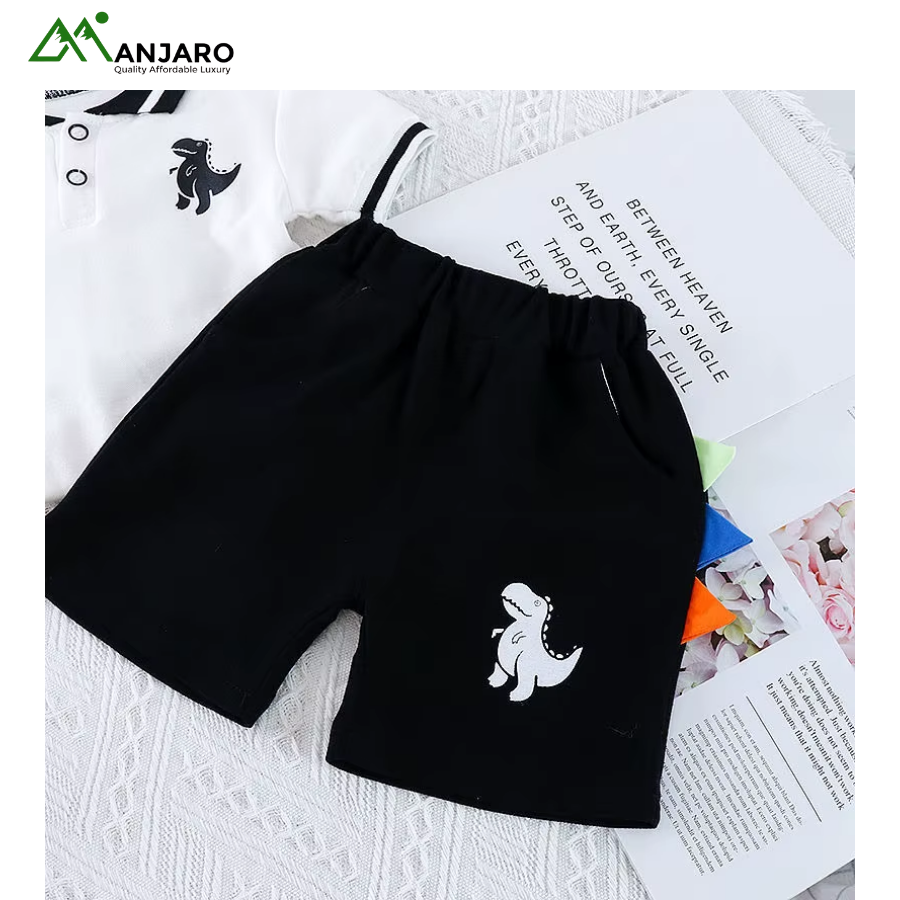 The cartoon dinosaur print adds a fun, whimsical touch that kids will love, while the lightweight design keeps them cool during outdoor activities, playdates, or family outings. Designed with casual style in mind, this outfit is easy to wear, mix-and-match, and perfect for summer adventures. Ideal for both personal use and wholesale distribution.