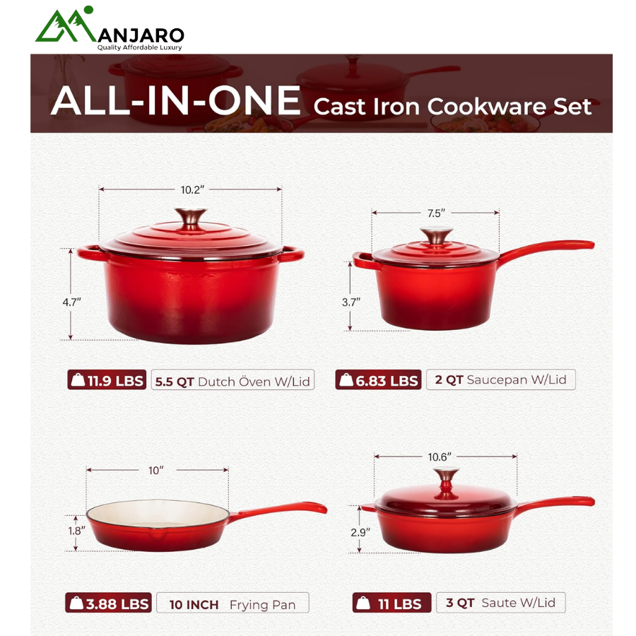 Upgrade your kitchen with a dynamic, fresh, and forward-thinking set of cookware built to last generations: the 4-Piece Red Enamel Cast Iron Cookware Set. This must-have collection combines the legendary heat retention of cast iron with a beautiful, easy-to-clean vibrant red enamel finish.
