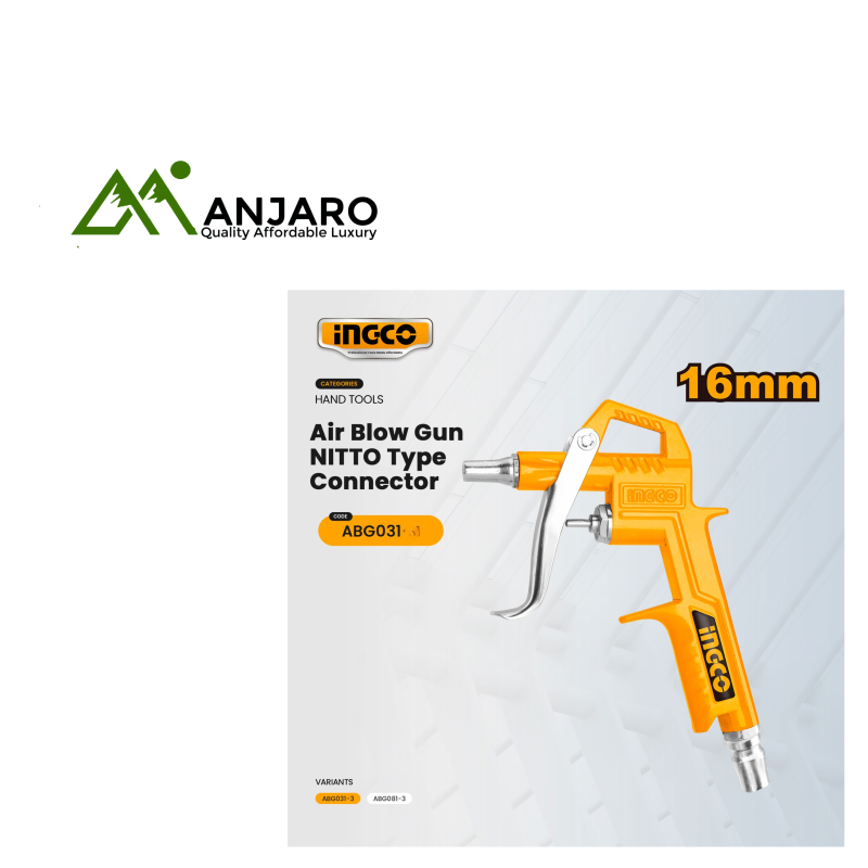 The ABG031 Air Blow Gun delivers efficient and controlled airflow for cleaning dust, debris, and metal shavings from hard-to-reach areas. Designed with a 16mm precision nozzle, this tool ensures focused air pressure for professional cleaning in workshops, automotive garages, and industrial environments. Its ergonomic handle provides comfortable grip and control during extended use, while the Europe type connector ensures seamless compatibility with standard air compressor systems. Compact yet powerful, the ABG031 is a must-have tool for any mechanic, technician, or DIY enthusiast who values precision and reliability.
