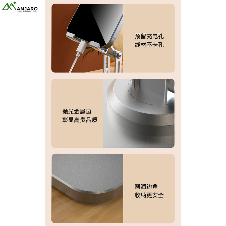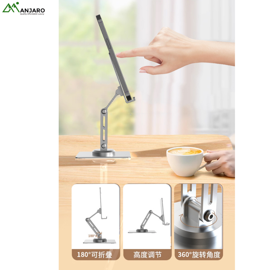 Crafted from high-quality aluminum alloy, this stand provides a durable, modern look while remaining lightweight and portable. Whether used on your office desk, bedside table, or in a studio setup, it delivers reliable support for smartphones and tablets of various sizes. A must-have accessory for anyone seeking comfort, efficiency, and a clutter-free lifestyle.