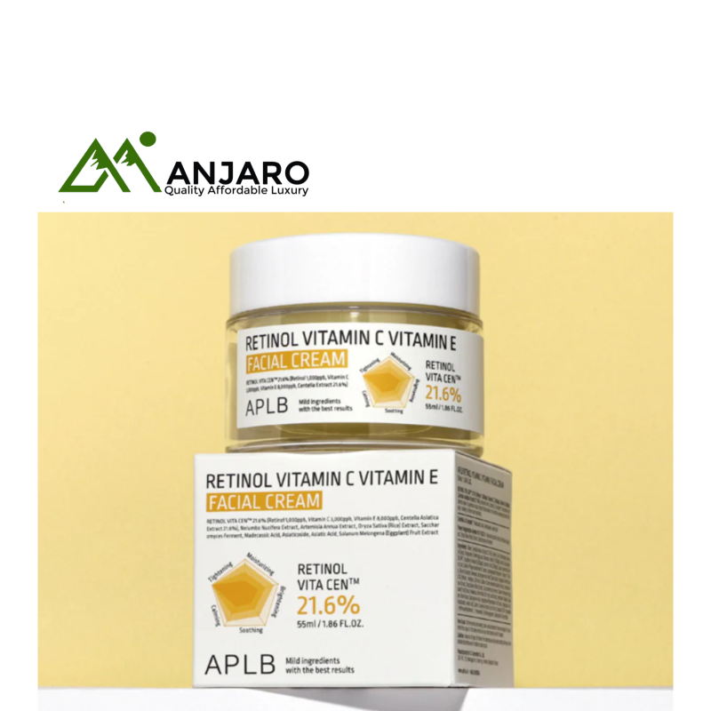 Elevate your skincare routine with the APLB Retinol Vitamin C & E Facial Cream – a potent 55ml formula designed to restore, protect, and renew your skin. This multi-action cream combines the power of retinol with antioxidant-rich vitamins C and E to tackle fine lines, wrinkles, dullness, and uneven skin tone.