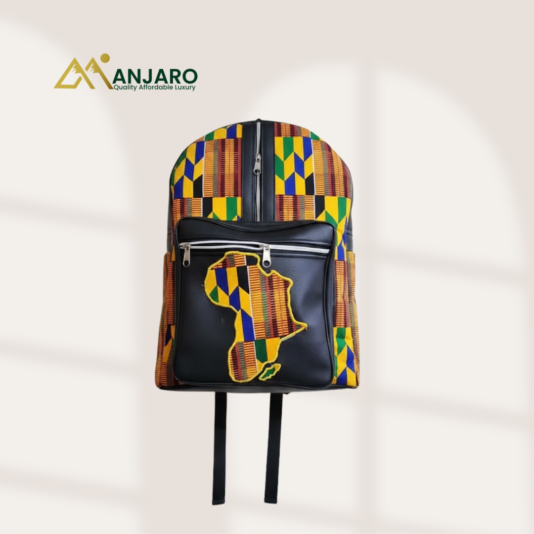 Kente Africa Map Inlay: A large, meticulously placed Africa map on the front pocket, emphasizing heritage and pride.