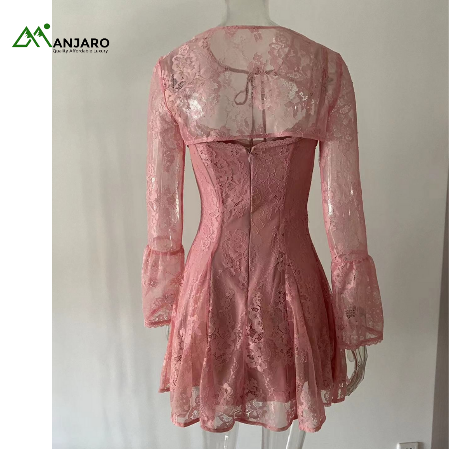 Turn heads this season with the Autumn Elegant Pink Lace Slimming Off-Shoulder Short Dress, the ultimate fusion of confidence, charm, and modern femininity. Designed in a romantic pink lace fabric, this dress defines your figure with its waist-slimming cut and soft off-shoulder neckline, balancing boldness with delicate detailing.