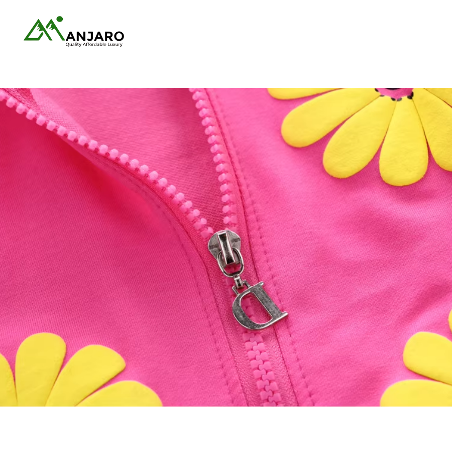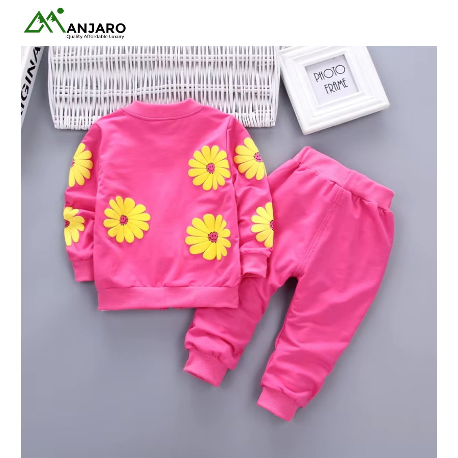Featuring a floral pattern, the set includes a cozy jacket, matching T-shirt, and comfy pants, making it easy to mix, match, and layer. Ideal for casual wear, family gatherings, or festive occasions, this set combines practicality with adorable design, keeping your child stylish and comfortable in every season.