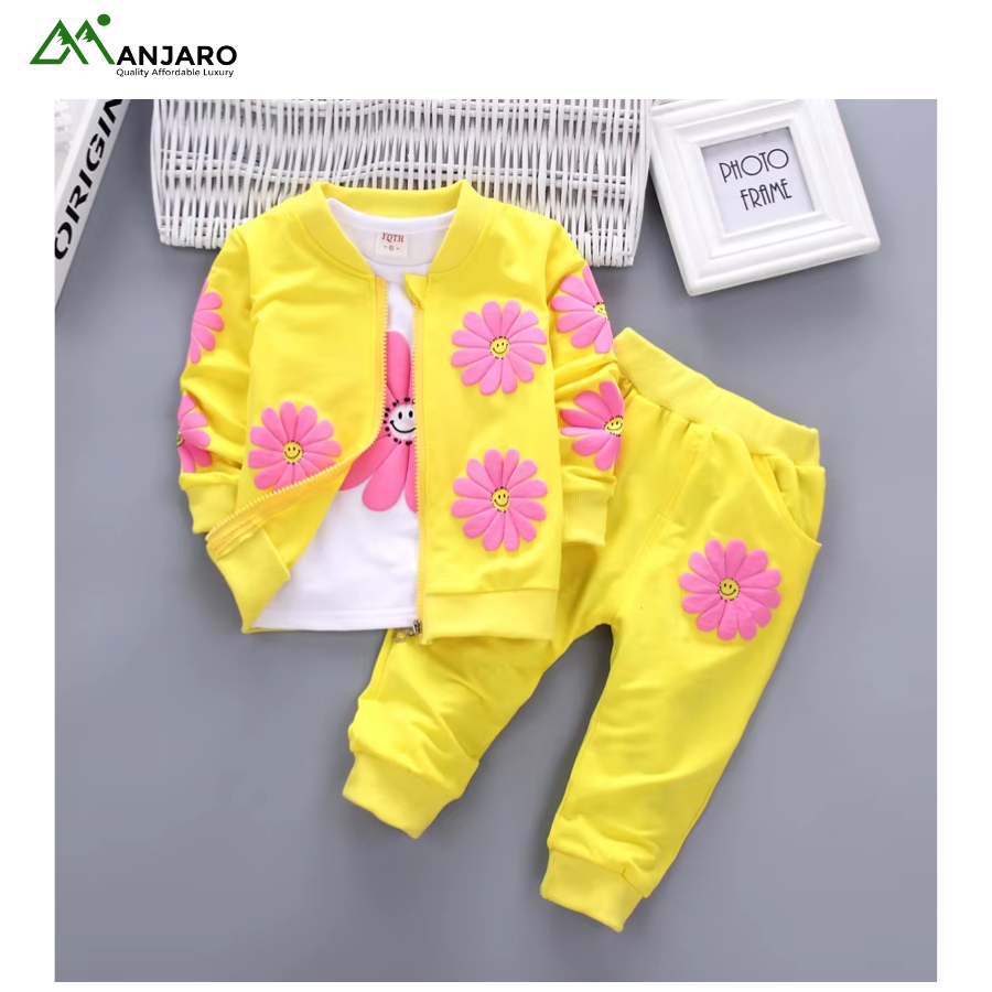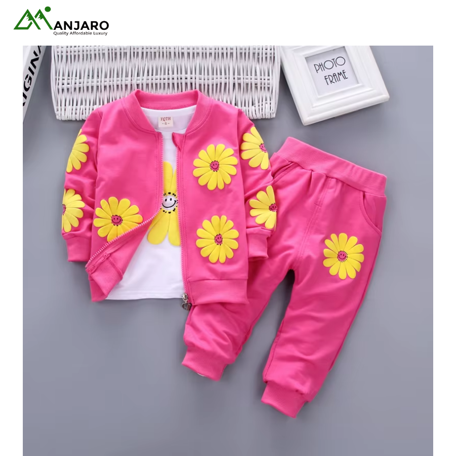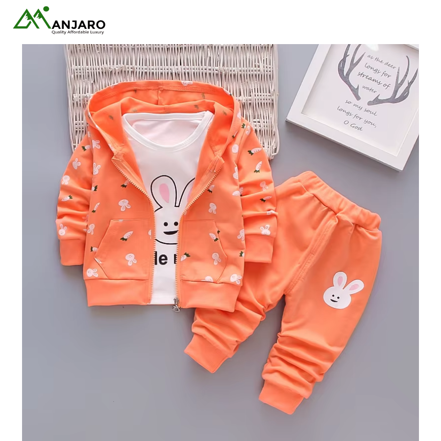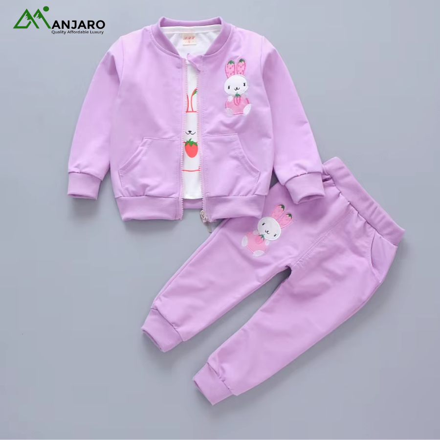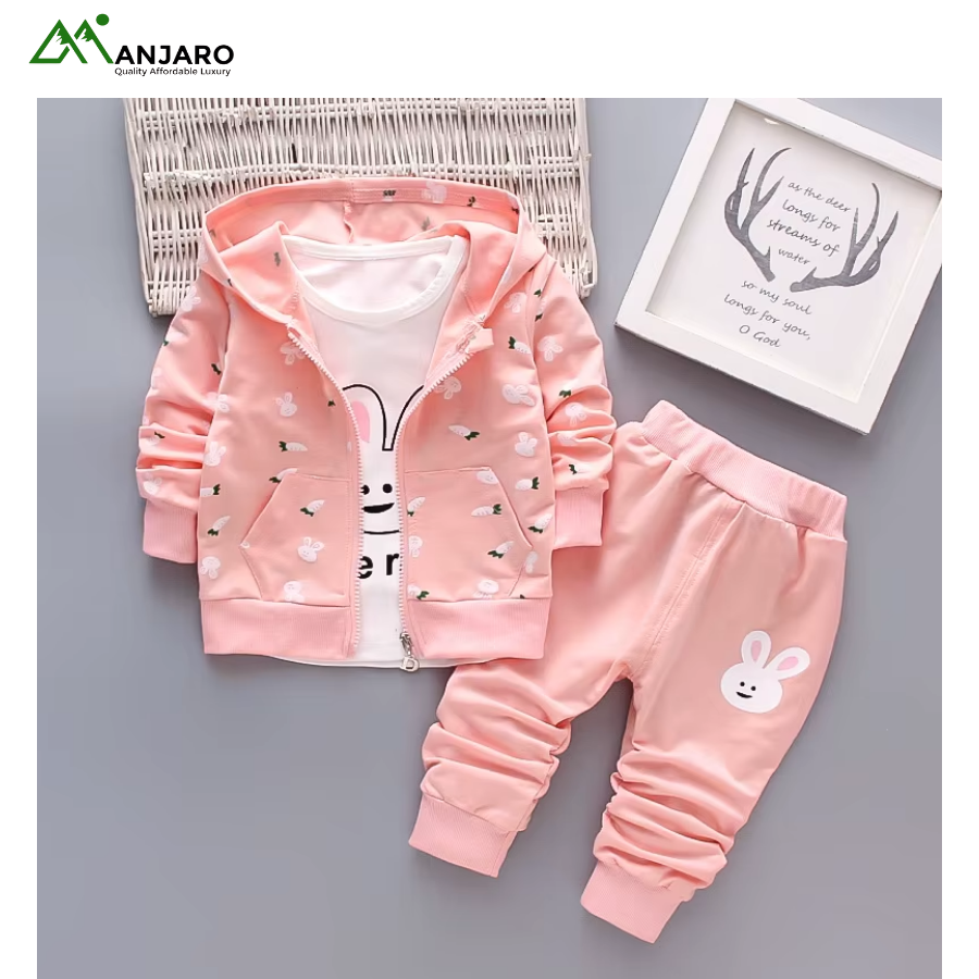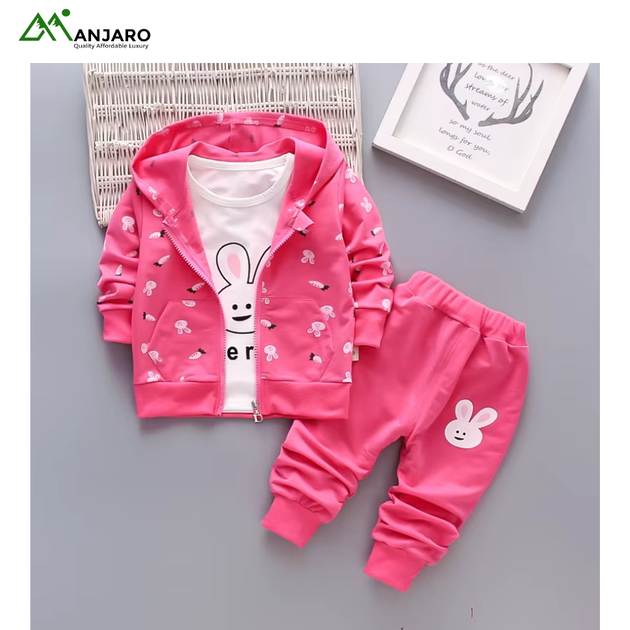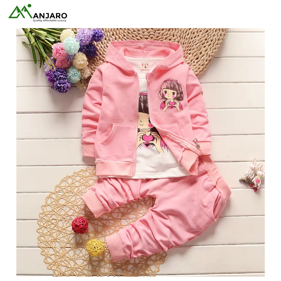 Keep her cozy, stylish, and ready for everyday adventures with this Baby Girls Cartoon Tracksuit Set. Designed with a soft polyester-cotton blend, it delivers breathable comfort and easy movement throughout the day. The cute cartoon print adds a playful touch, while the pullover sweatshirt, jogger pants, and hooded coat create a versatile 3-piece outfit suitable for outings, school, or relaxed home days. Built for durability, comfort, and effortless style—perfect for the active little girl.