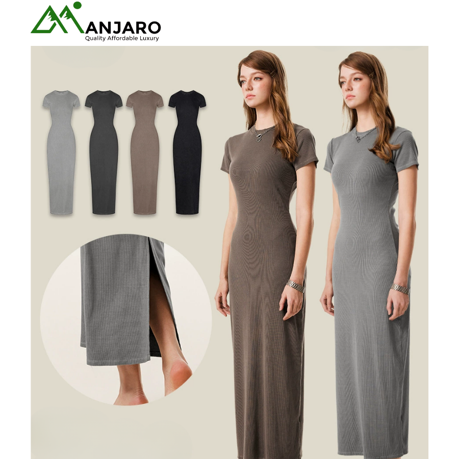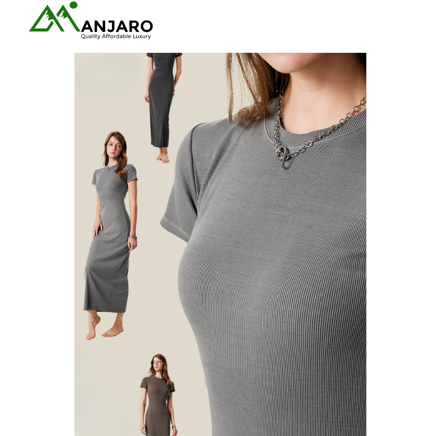 Design: Round neck, short sleeves, and body-hugging silhouette for a flattering look.