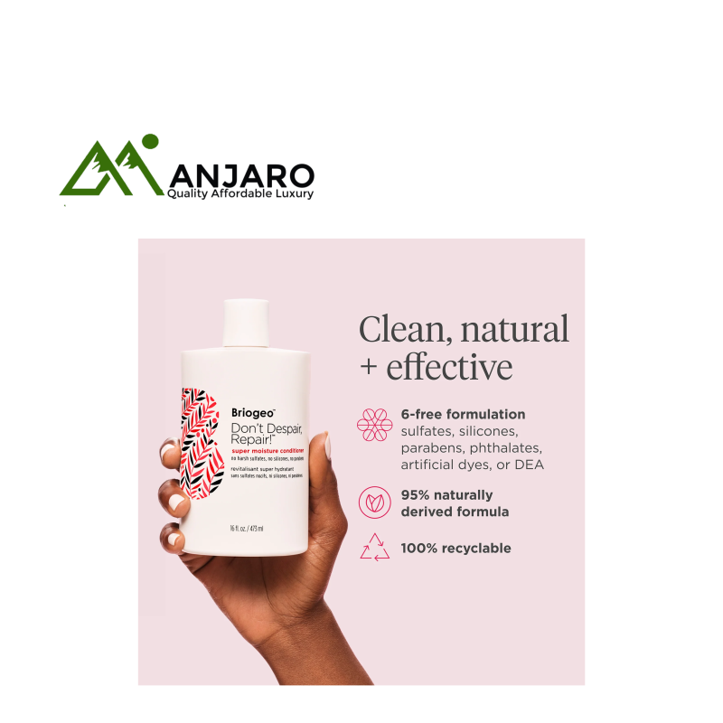 Bring your hair back to life with BRIOGEO Don’t Despair Repair Super Moisture Conditioner (16 fl oz) — a luxurious, ultra-nourishing formula that delivers intense hydration and strengthens dry, damaged strands. Enriched with algae extract, B-vitamins, and rosehip oil, this conditioner restores softness, elasticity, and shine while helping to prevent future breakage.