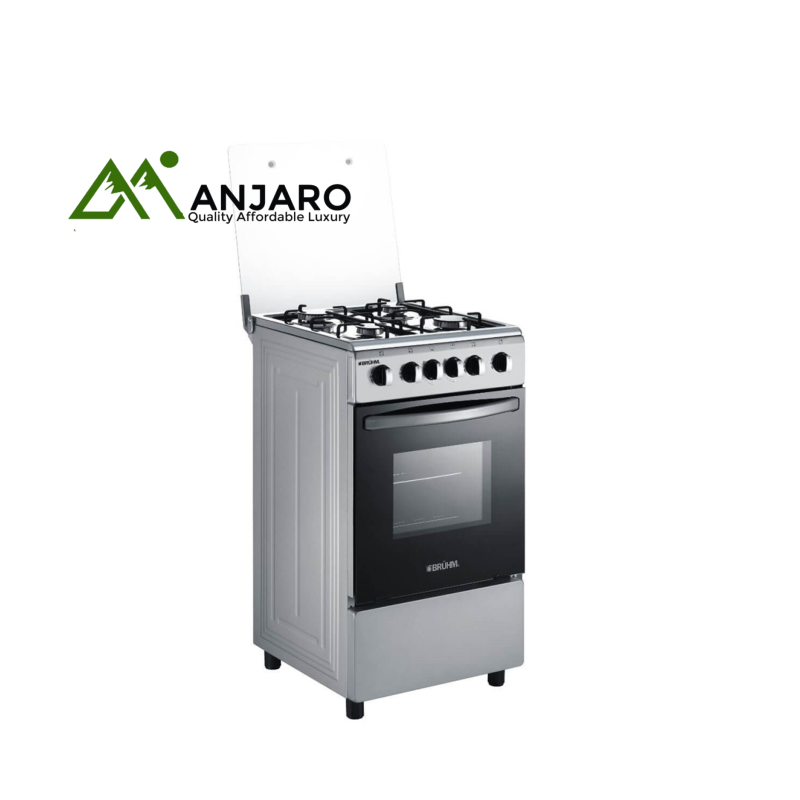 Introducing the Bruhm BGC-5540IS 4-Burner Gas Cooker with Oven and Grill, a perfect blend of functionality and style for your kitchen. With its elegant silver finish, this compact cooker not only complements your kitchen décor but also offers efficient cooking performance.