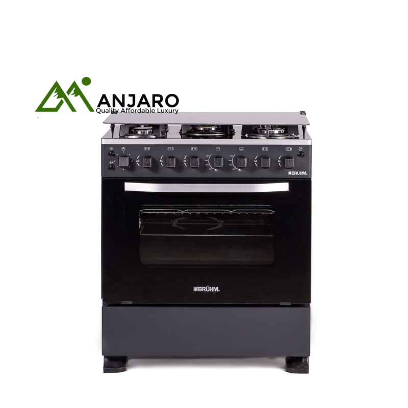 Introducing the Bruhm BGC-8650IG 5-Burner Gas Cooker with Oven and Grill, a perfect blend of functionality and style for your kitchen. With its elegant black finish, this cooker not only complements your kitchen décor but also offers efficient cooking performance.