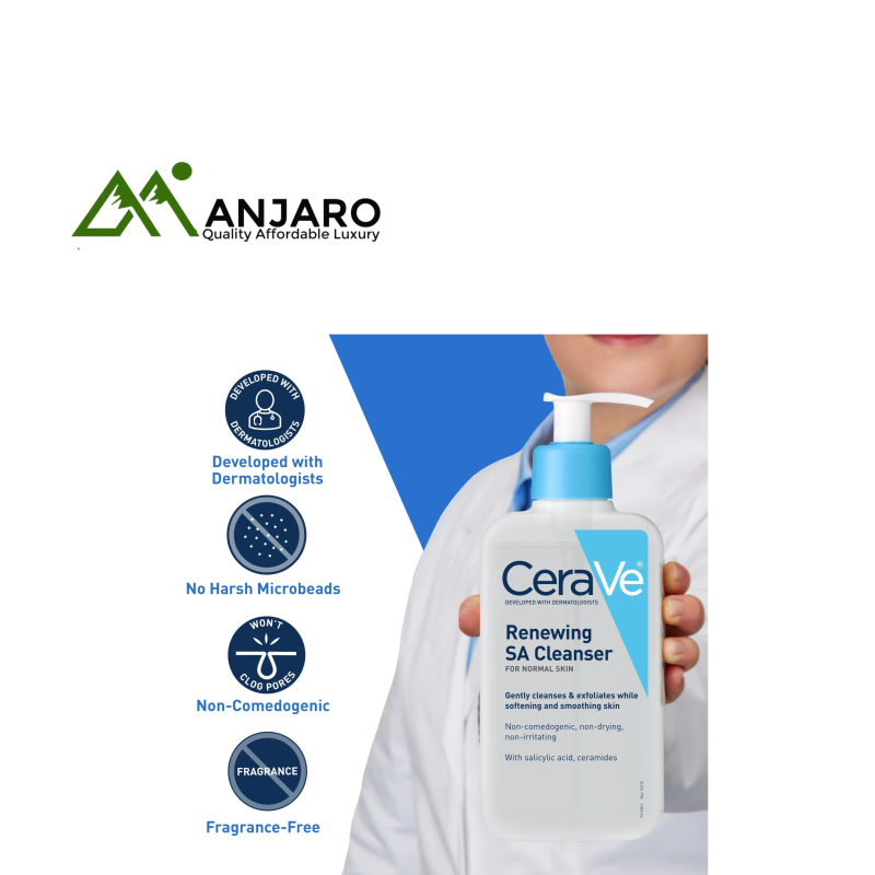 The CERAVE Renewing SA Cleanser is a gentle, exfoliating face and body cleanser formulated with salicylic acid to smooth and soften rough, bumpy skin. Enriched with three essential ceramides, niacinamide, and hyaluronic acid, it helps maintain the skin’s natural barrier while providing non-irritating exfoliation.