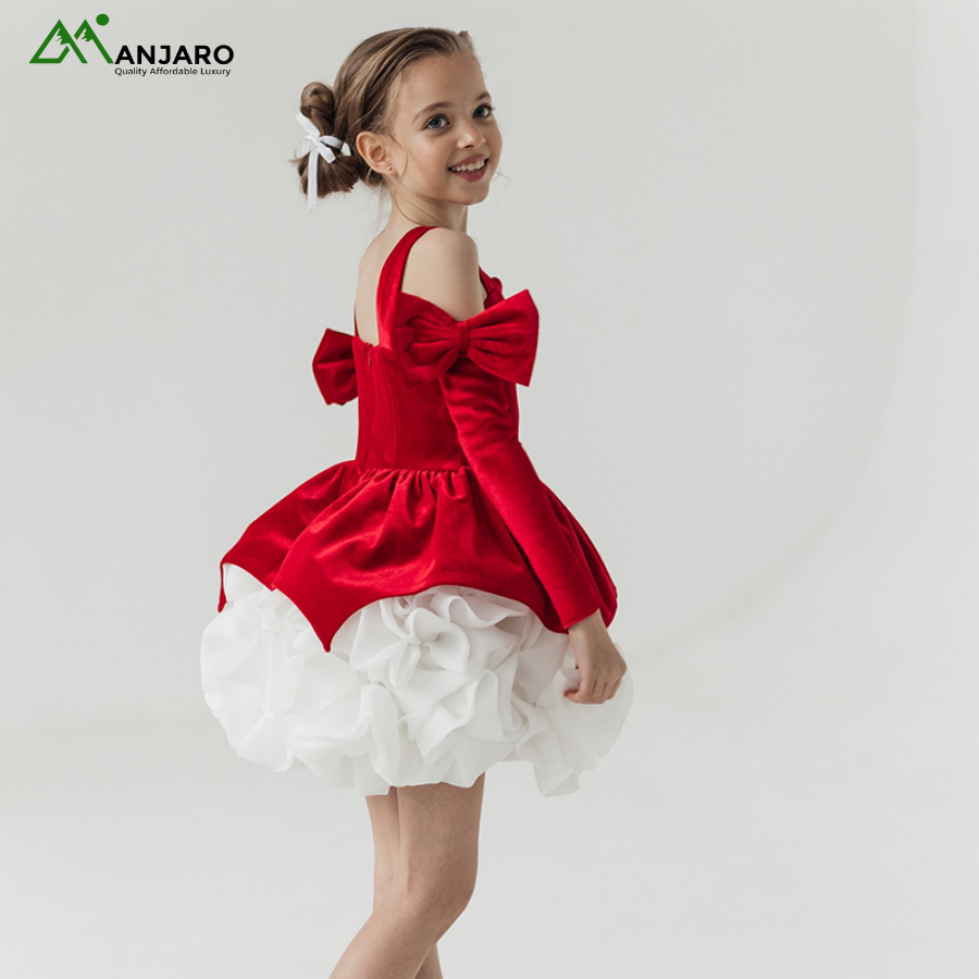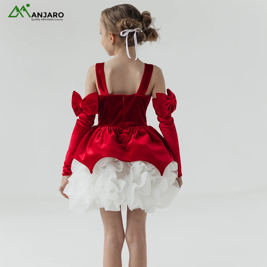 Celebrate the holidays in style with this Christmas Toddler Girls Party Dress. Crafted from a soft polyester-cotton blend, this festive knee-length ball gown features spaghetti straps and 3D floral decorations, perfectly complemented by arm sleeves for a playful yet elegant look. Breathable and eco-friendly, it ensures comfort throughout parties, family gatherings, or holiday events. Its classic silhouette and decorative bow make it an enchanting choice for little fashionistas, blending festive charm with everyday wearability.