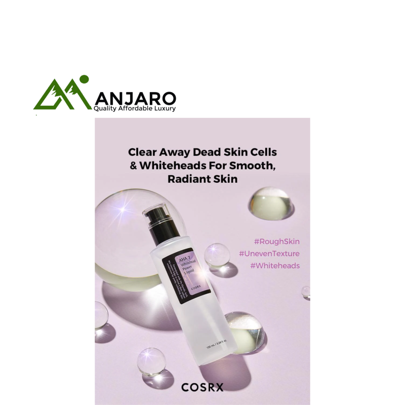 The COSRX AHA 7 Whitehead Power Liquid (100ml) is a gentle yet effective exfoliating essence that targets whiteheads, dullness, and uneven skin texture. Formulated with 7% glycolic acid (AHA), it helps to dissolve dead skin cells, unclog pores, and promote a smoother, more radiant complexion.