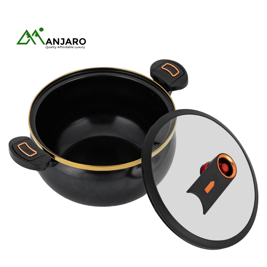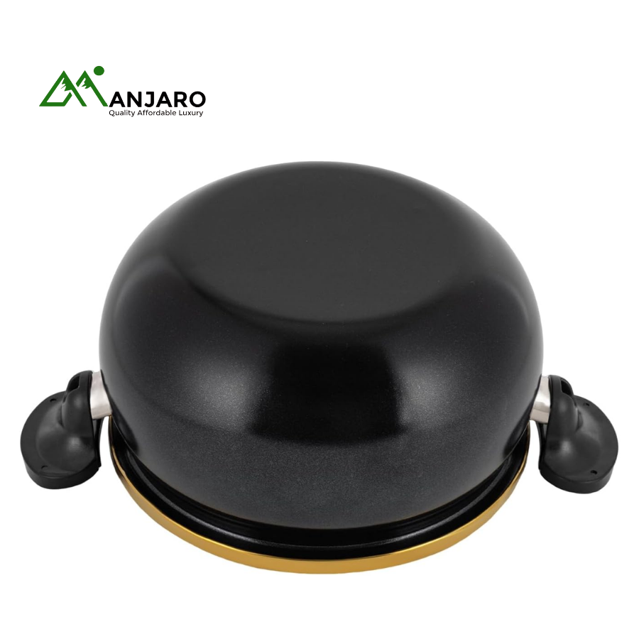 Introduce a dynamic, fresh, and forward-thinking piece of cookware to your kitchen with the Premium Dark Metallic Cook Pot. This pot is characterized by its elegant, rounded profile and a stunning deep metallic grey or black speckled finish. A luxurious gold-toned metallic trim circles the rim, adding a touch of quality affordable luxury to your stove top.