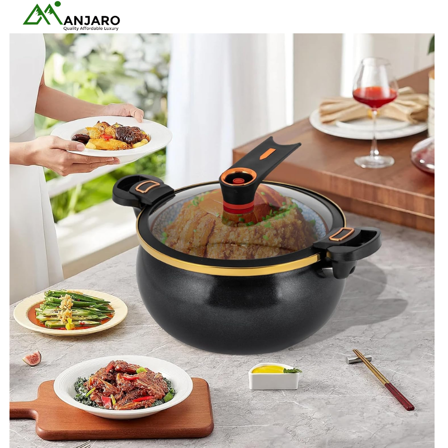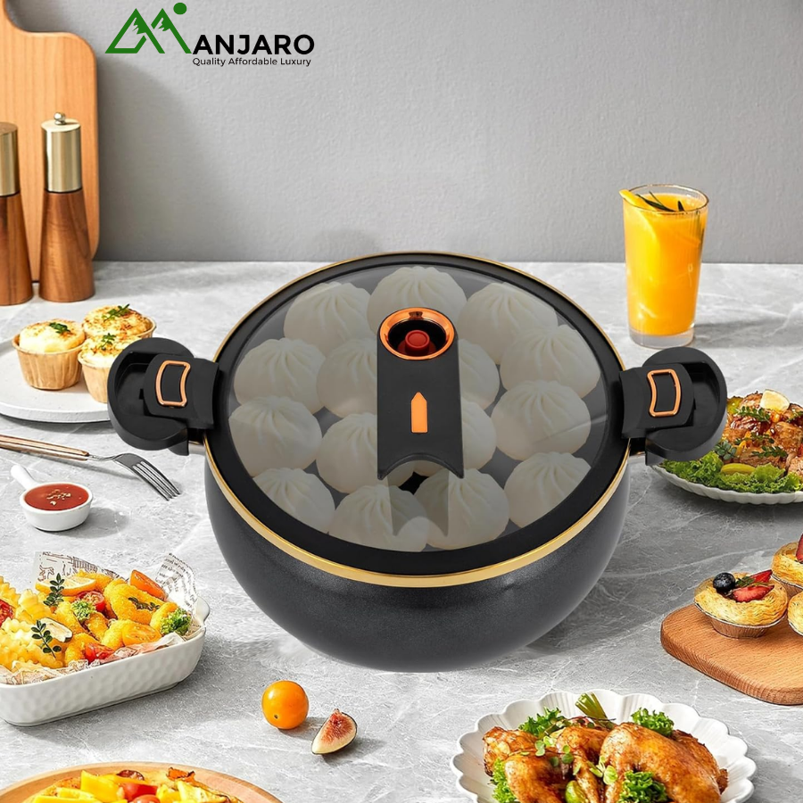 Design: Modern rounded/belly shape provides efficient heat circulation for even cooking.