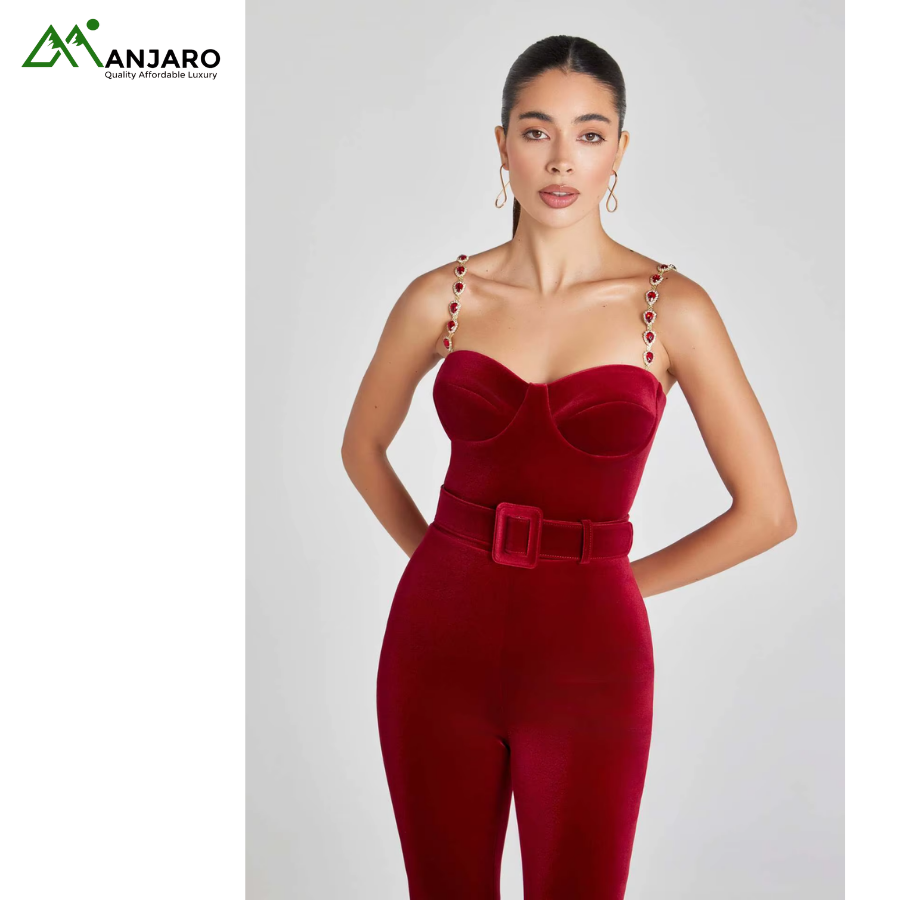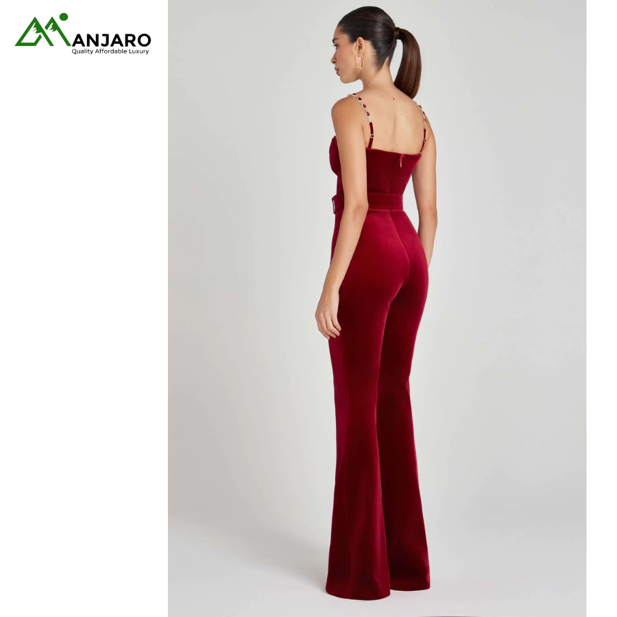Step into the spotlight with the D&M 2025 Fashion Celebrity Women’s Jumpsuit, designed for women who love elegance and comfort. Crafted from luxurious 100% polyester velvet, this sleeveless wide-leg jumpsuit combines breathability, quick-dry performance, and eco-friendly properties.