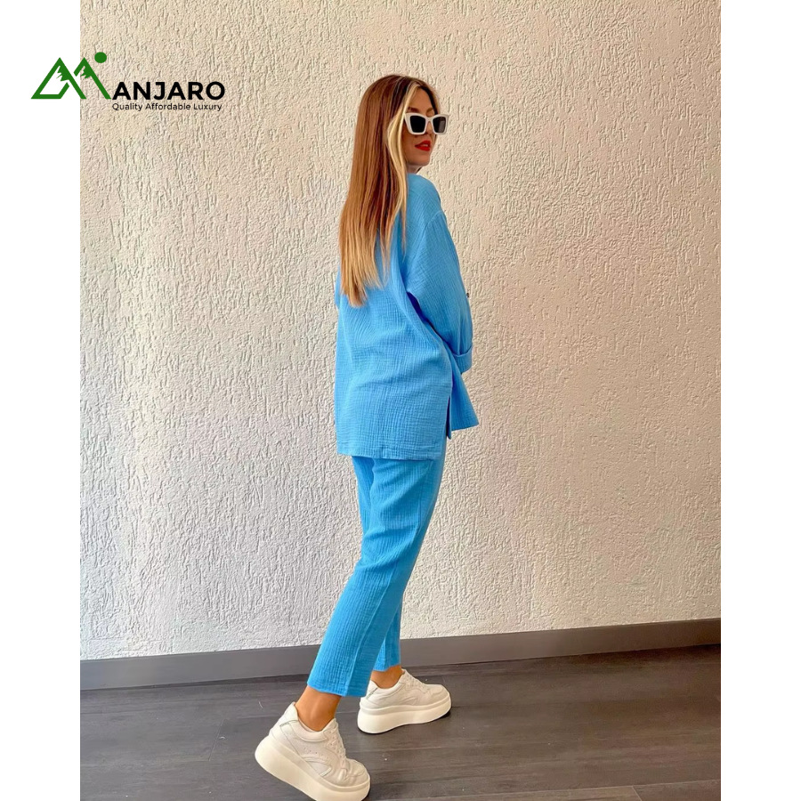 Perfect for casual outings, lounging at home, or light outdoor activities, this versatile tracksuit set combines fashion with practicality. The inclusion of functional pockets adds convenience, while the breathable fabric ensures you stay cool and comfortable even on warm summer days.