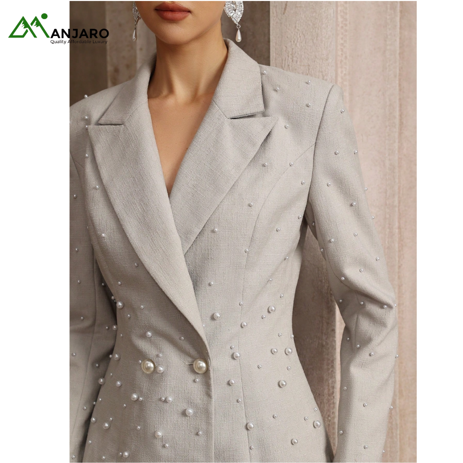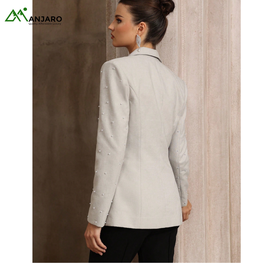Featuring exquisite pearl and rivet bead embroidery, this blazer adds a refined, feminine twist to a solid single-button silhouette. The square lapel collar and tailored regular fit make it the ideal choice for office wear, business meetings, and elegant casual outings.