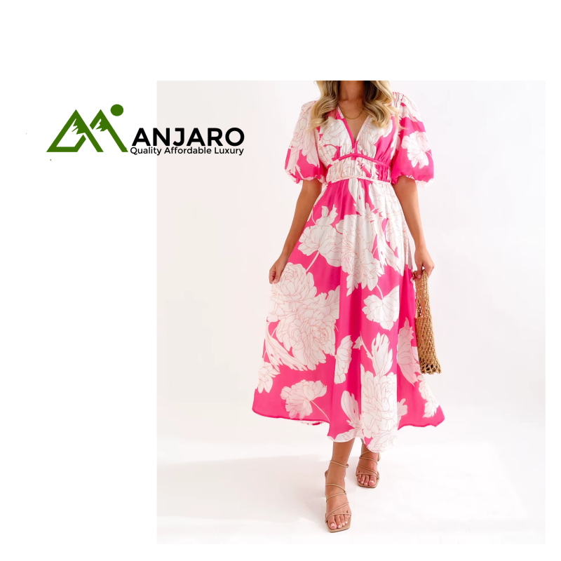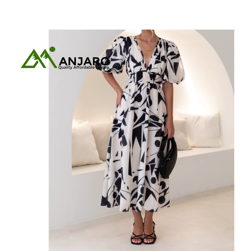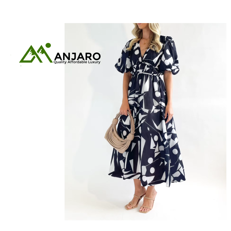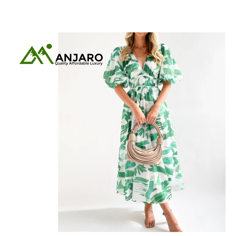 Step into a world of sophisticated style and comfort with the D&M V-Neck Puff Sleeve Slim Long Dress. This stunning midi dress is the perfect blend of sweet charm and elegant allure, designed for the modern woman. Its flattering fit-and-flare silhouette and natural waistline hug your curves in all the right places, creating a beautifully balanced and feminine look. The delicate V-neckline and short puff sleeves add a touch of playful romance, making this dress a must-have for any summer occasion.