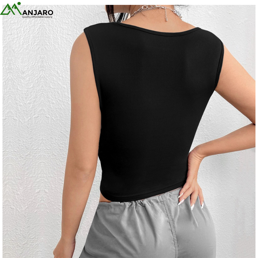 Perfect for women who value versatility and casual elegance, this short elastic tank top delivers a chic, sporty, and functional look.