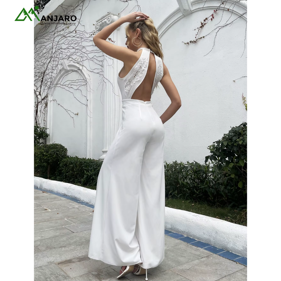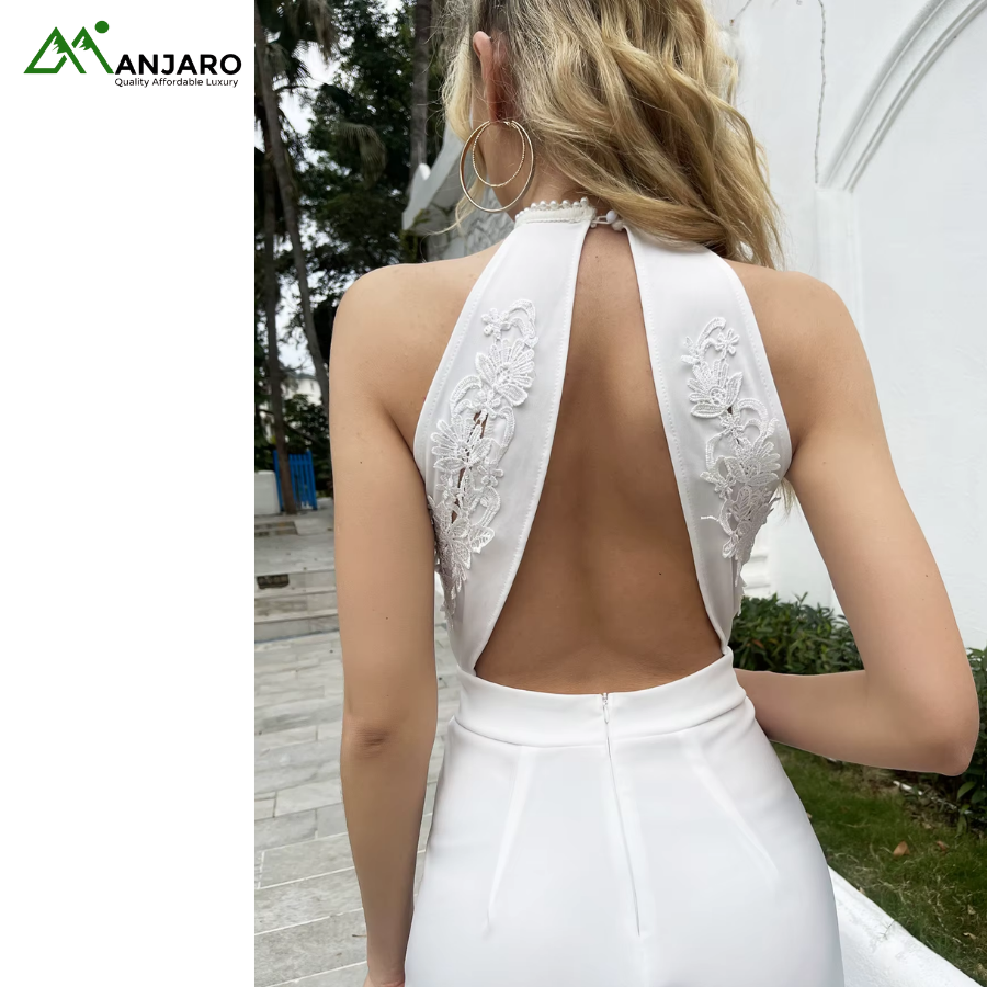 Turn heads with the D&M Women’s White Pearl Halter Jumpsuit, a luxurious and sexy one-piece outfit designed for women who love to make a statement. Crafted from premium polyester, this jumpsuit features a halter neckline, backless design, and embroidered guipure lace applique for an elegant and eye-catching look.